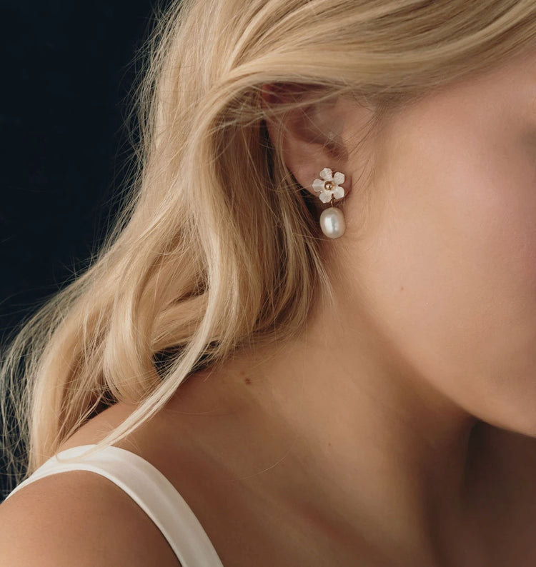 Valencia Pearl Drop Earring - White