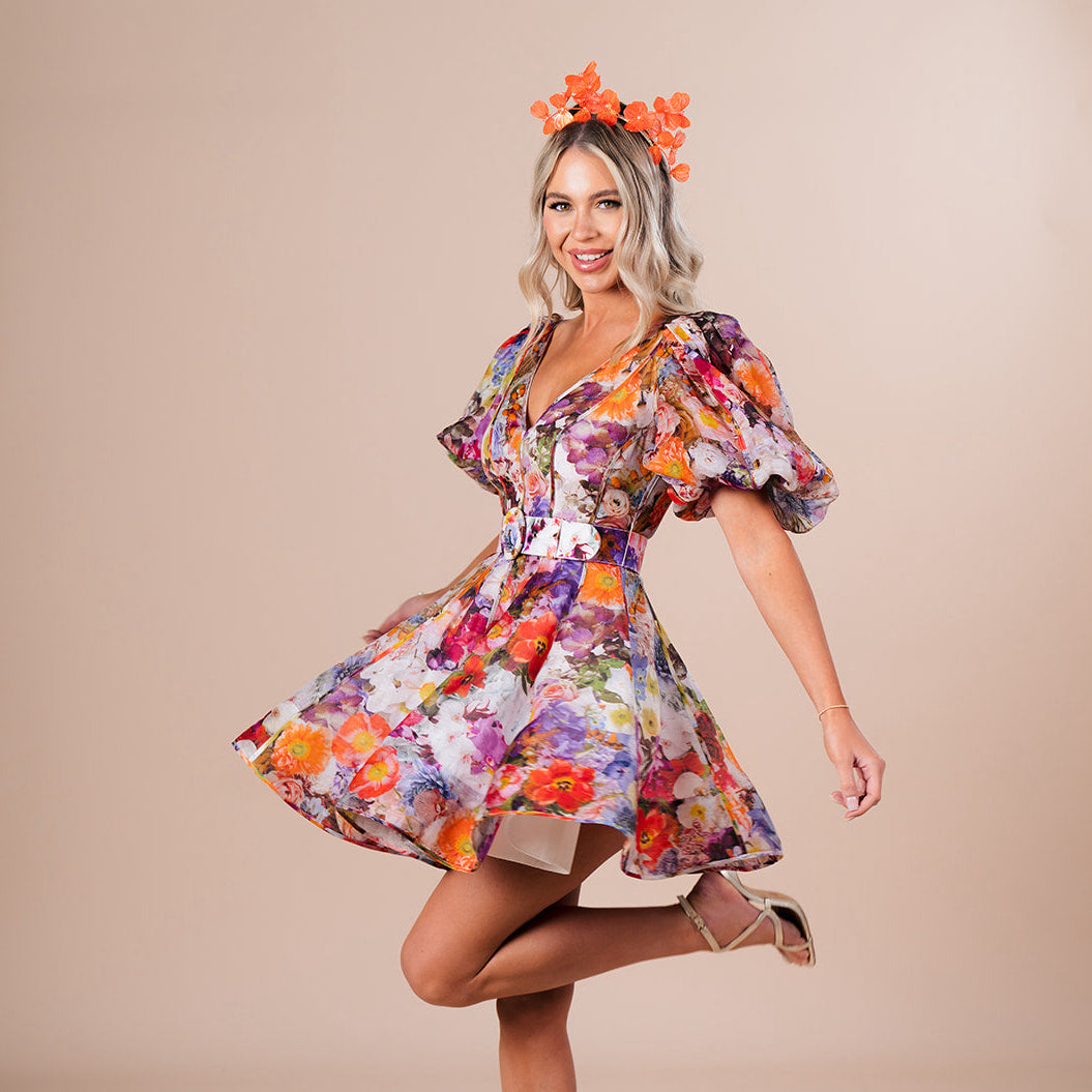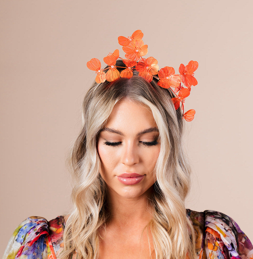 The Orange Bella Headpiece is a lightweight statement millinery piece perfect for your next racing event.