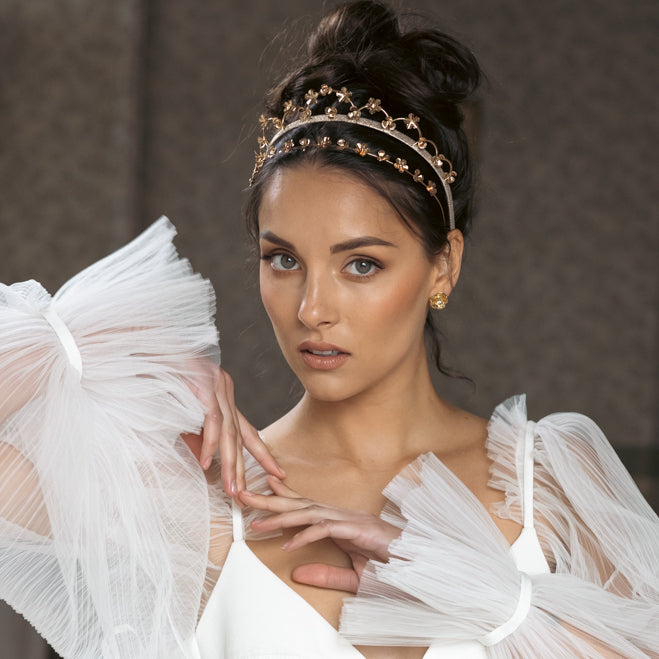 A statement crown that works beautifully for sleek up-styles or soft waves, and can be utilised for both bridal and race-wear.